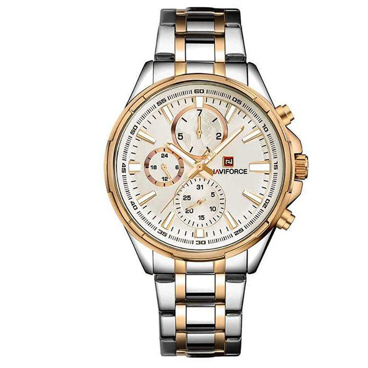 ساعت مچی مردانه نیوی فورس NAVIFORCE مدل NF9089 می باشد. کسانی که ساعت مچی اورجینال با قیمت مناسب و با دوام و کیفیت بالا می خواهند NAVIFORCE یک انتخاب عالی محسوب می شود. این ساعت با طراحی کلاسیک ، بند استیل میباشد. ساعت های نیوی فورس محصول اورجینال هستند که موتور کوارتز ساخت ژاپن با کیفیت عالی دارند. دارای بند استیل,ضد حساسیت و رنگ ثابت با شیشه معدنی مقاوم در برابر خش که در این چند سال خیلی توانسته در دل مردم جا باز کند. ساعت های نیوی فورس ظاهر جذاب و اسپرتی دارند.