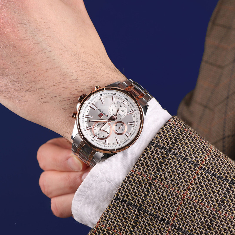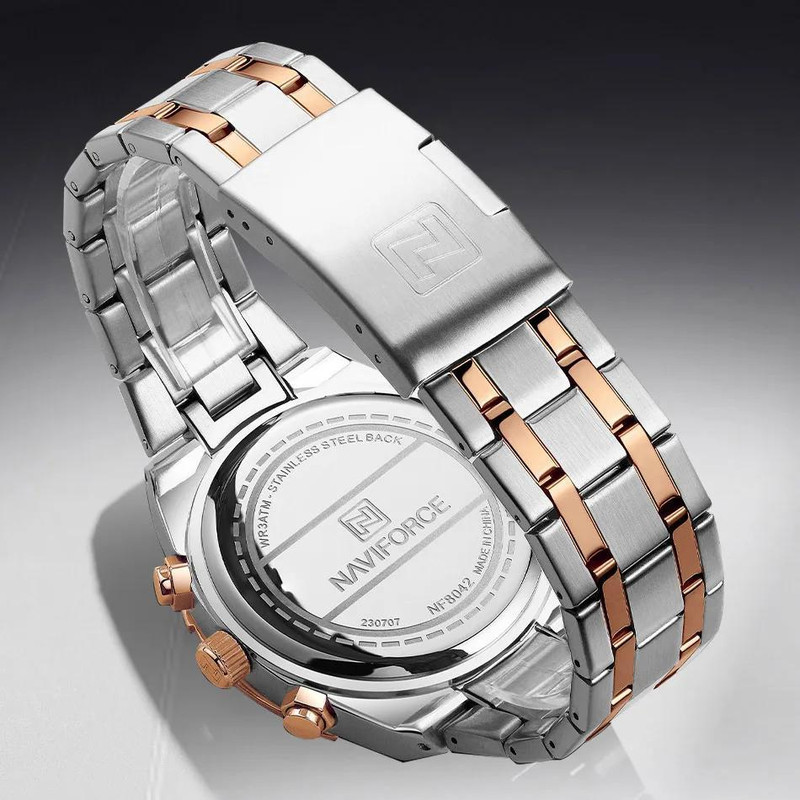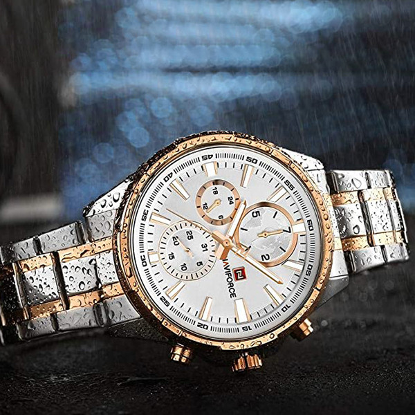 ساعت مچی مردانه نیوی فورس NAVIFORCE مدل NF9089 می باشد. کسانی که ساعت مچی اورجینال با قیمت مناسب و با دوام و کیفیت بالا می خواهند NAVIFORCE یک انتخاب عالی محسوب می شود. این ساعت با طراحی کلاسیک ، بند استیل میباشد. ساعت های نیوی فورس محصول اورجینال هستند که موتور کوارتز ساخت ژاپن با کیفیت عالی دارند. دارای بند استیل,ضد حساسیت و رنگ ثابت با شیشه معدنی مقاوم در برابر خش که در این چند سال خیلی توانسته در دل مردم جا باز کند. ساعت های نیوی فورس ظاهر جذاب و اسپرتی دارند.