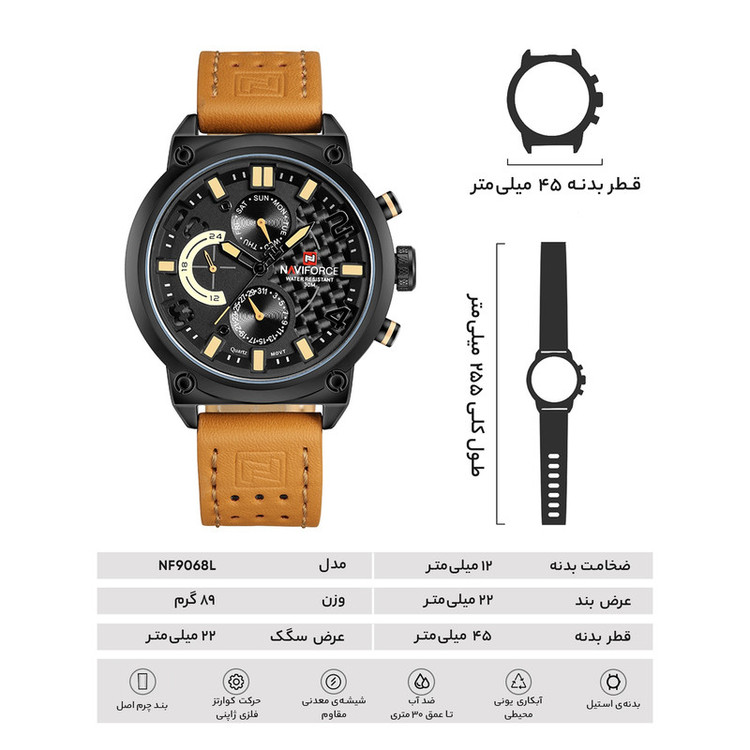 ساعت مچی عقربه‌ای مردانه نیوی فورس مدل NF9068L