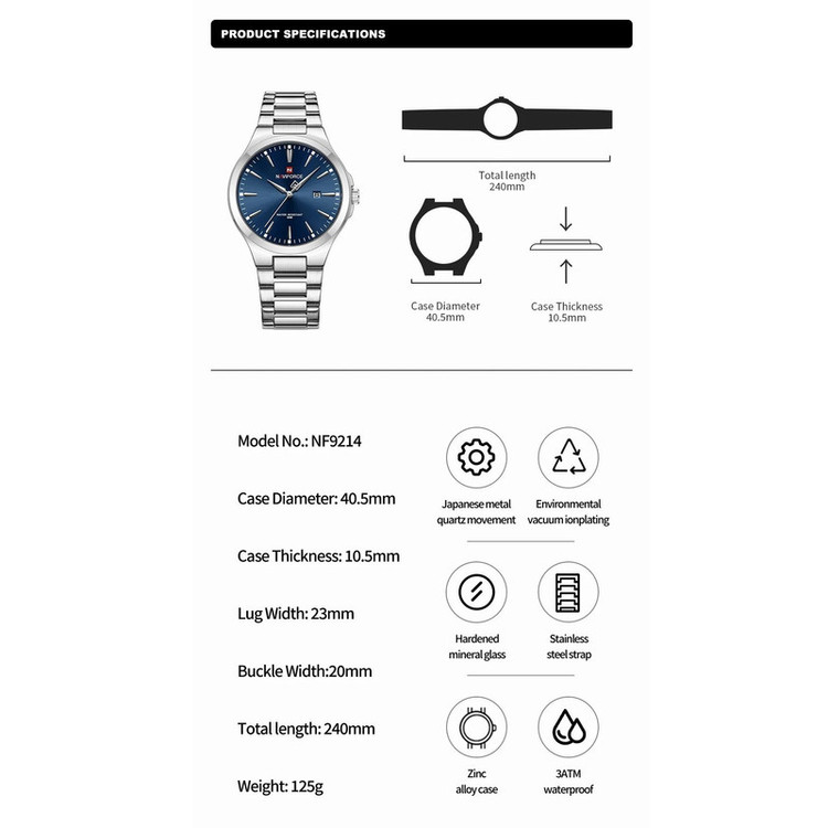 ساعت مچی عقربه‌ای مردانه نیوی فورس مدل NF9214SBE