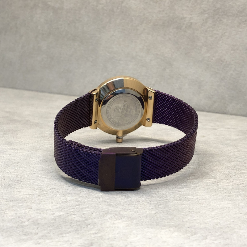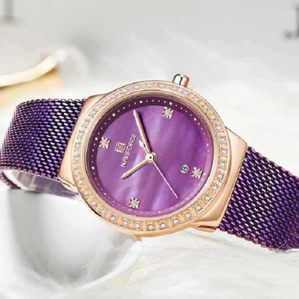 ساعت نیوی فورس از جمله برندهای اورجینال است که در سالهای اخیر ساعتهای با کیفیت و مرغوب را روانه بازار کرده است. این مدل از مدلهای زنانه دارای رنگ فوق العاده زیبا و آبکاری با کیفیت میباشد. دور قاب این ساعت نگینکاری شده و صفحه اینکار صدفی است.