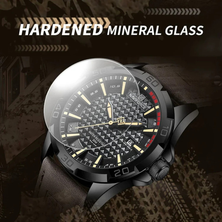 قابلیتهای ساعت : تاریخ شمار , صفحه طرحدار , عقربههای شبتاب , شیشه ضدخش