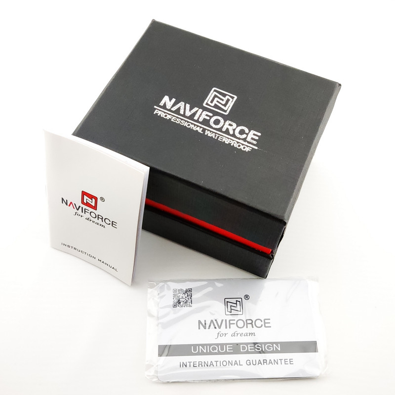 سایر توضیحات : دارای سرکوک مارکدار،ثانیه شمار طرح لوگوی نیوی فورس،حک برند بر روی صفحه،قفل،بند و پشت درب. دارای هولوگرام،دفترچه، جعبه طبق تصاویر. همچنین یک عدد باتری اضافه همراه کالا ارسال میشود.